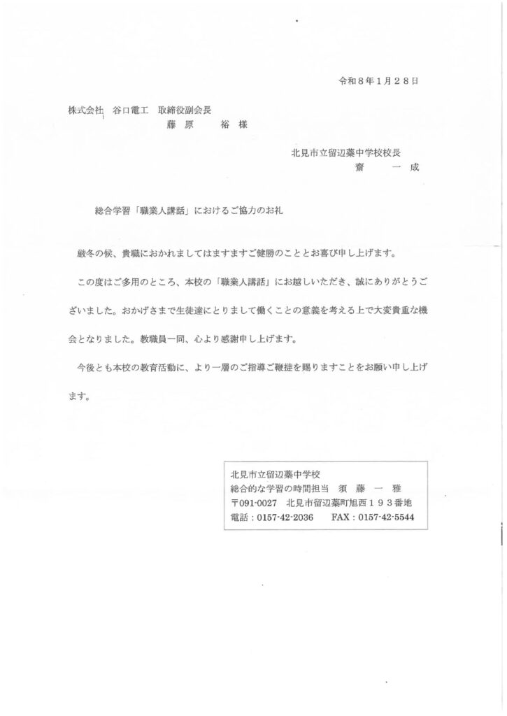 留辺蘂中学校授業 職業人講和 2026-02-02 最終更新日時 : 2026-02-02 editor01 1/23 留辺蘂中学校にて職業人講和が行われました。 地元企業5社が、留辺蘂中学校の1年生15名に社会人に向けての事や 地元企業で働くメリットなどの説明も行いました。